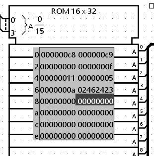 The project test harness uses ROMs to store RISC-V instructions which will be fed into your CPU. For this circuit, the big block with hex digits is our ROM that contains the numbers which we will feed sequentially into our